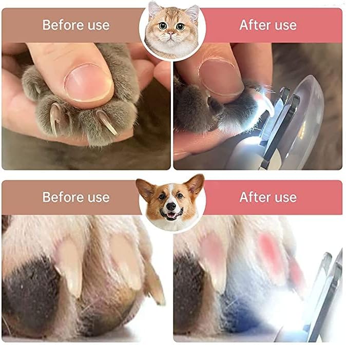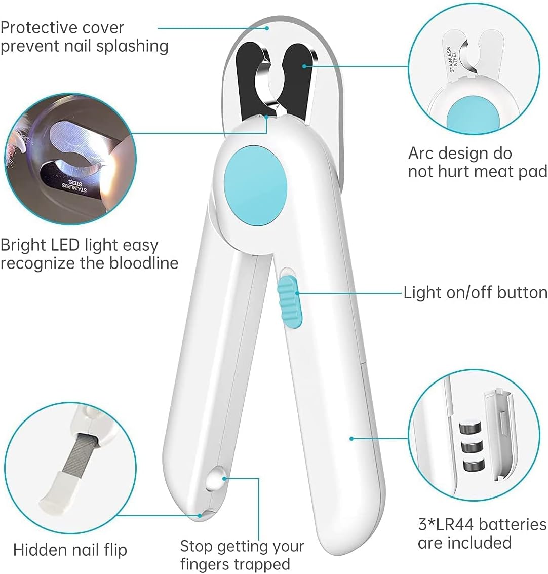 - مقص أظافر للحيوانات الأليفة مزود بإضاءة LED عالية السطوع - مقص أظافر القطط والكلاب مزود بإضاءة LED. تُضيء هذه الإضاءة خط الدم الرقيق للأظافر ذات اللون الفاتح، مما يُتيح لك تقليمها في المكان الصحيح! طريقة آمنة وسهلة لتقليم أظافر حيوانك الأليف.
