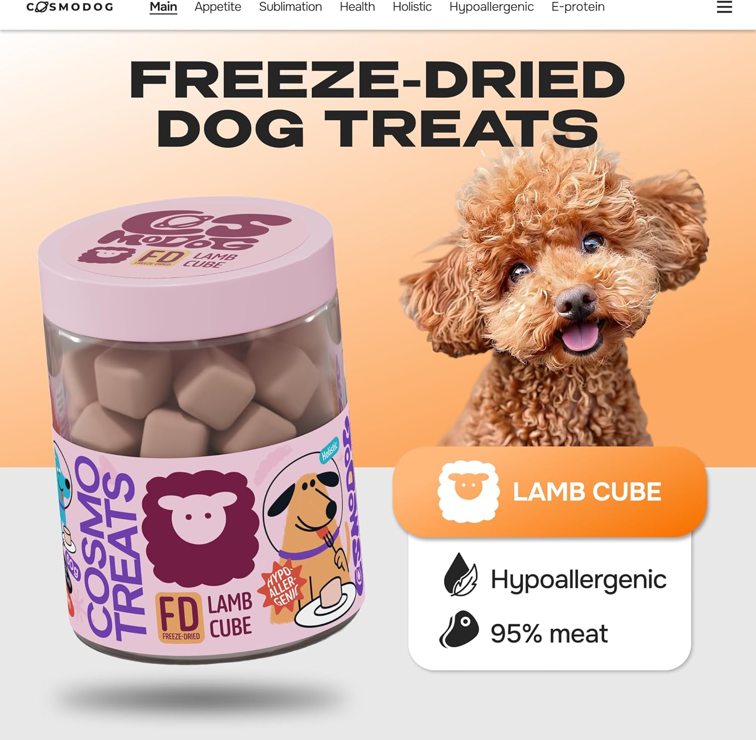 مكافآت COSMODOG المجففة بالتجميد بنكهة لحم الضأن، طعام كلاب مضاد للحساسية غني بالبروتين E، مناسب للجراء والصغار (60 غرام)