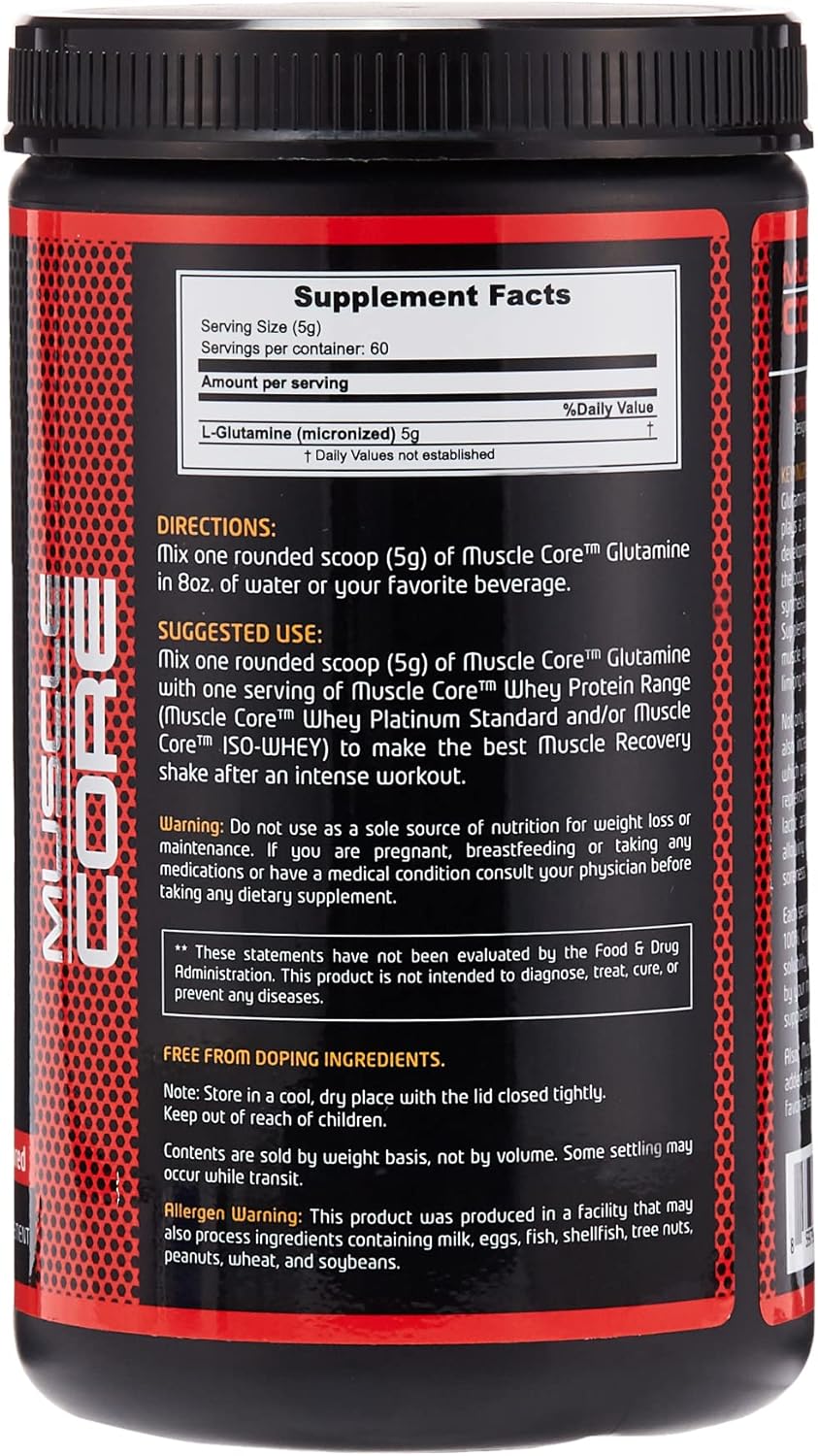غلوتامين ميكرونيزد من ماسل كور نيوتريشن | 300 غرام | بدون نكهة | 5 غرام غلوتامين لكل حصة | يدعم استشفاء العضلات | 60 حصة | بدون نكهة