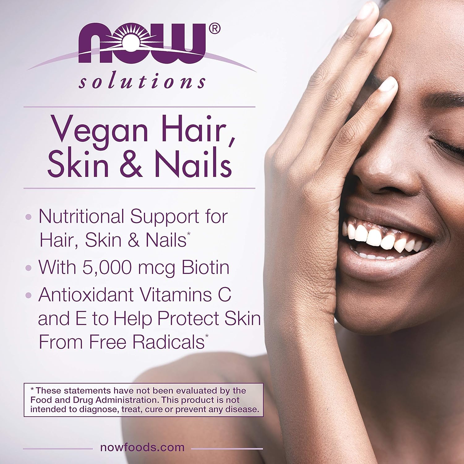 - دعم غذائي للشعر والبشرة والأظافر: يعمل منتج NOW Solutions النباتي للشعر والبشرة والأظافر على المستوى الخلوي لتعزيز الجمال الطبيعي من الداخل.*