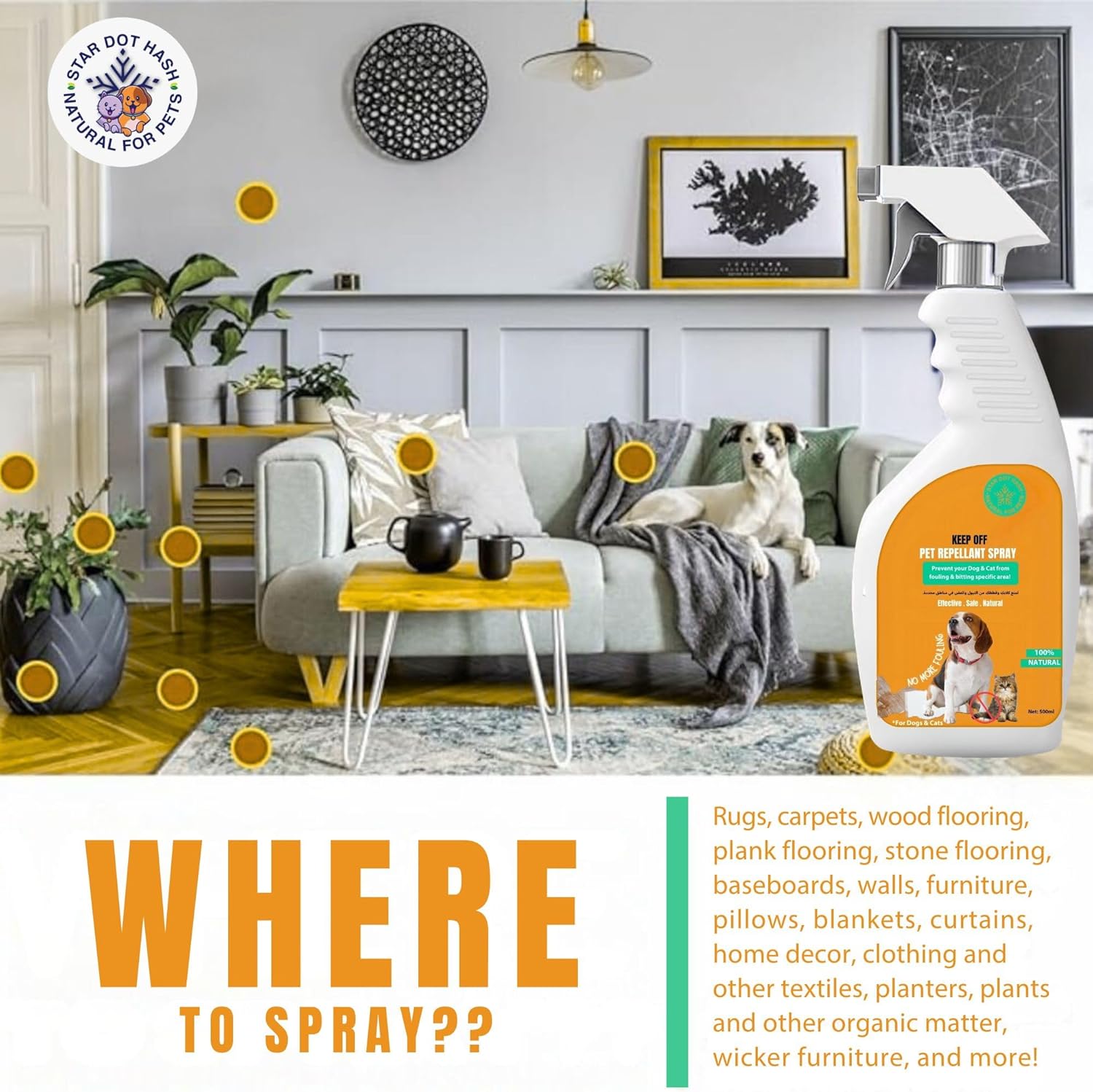 بخاخ طارد للبول للقطط والكلاب من ستار دوت هاش، 500 مل