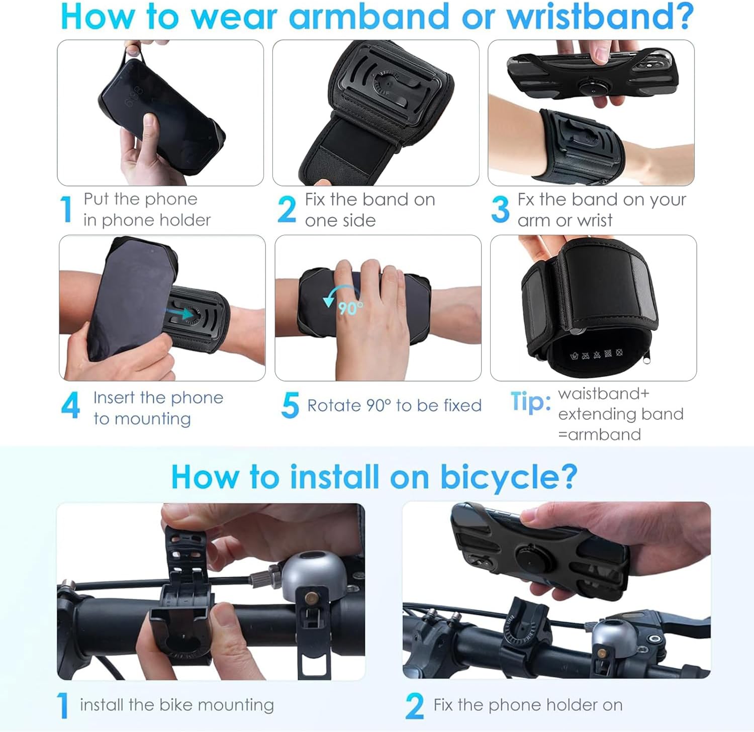 - ♦ 【3 in 1 , Suitable for men and women】 The running armband is versatile in nature, you can use it for running, jogging, camping, hiking, fishing or dog walking. You can also use on arm, on wrist and on bicycle, there are 3 functions in 1 set. And the armband and wrist band are elastic and adjustable, the sports armbands are suitable for both men and women, there is no need to worry about size problem.
