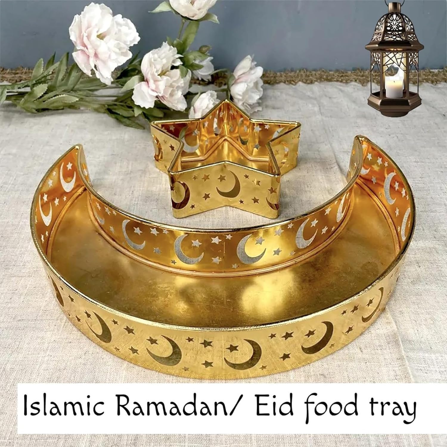 Gold Ramadan Decorative Trays, Ramadan Star and Moon Tray, 3PCS