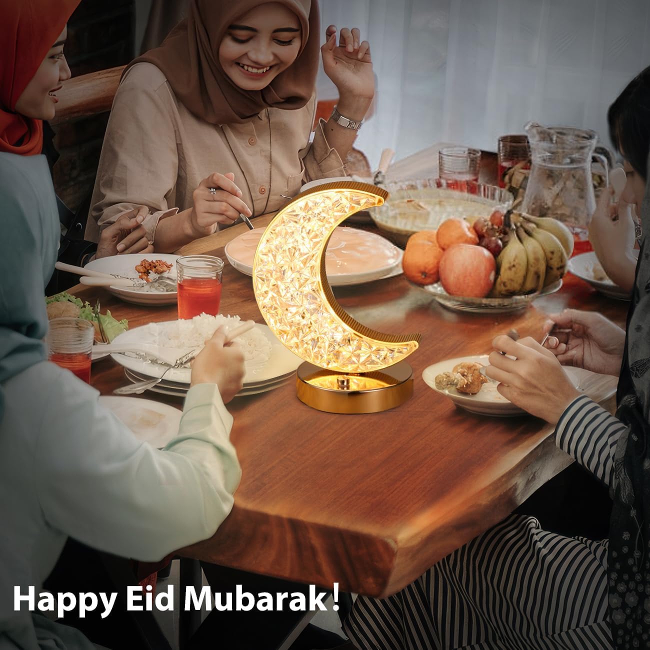 Ramadan Table Lamp, Stepless Dimmable Touch Lamp with 3 Colors, Rechargeable Night Light, Crystal Moon Shape Table Lamp for Home Bedroom Living Room Table Decorations (Moon)